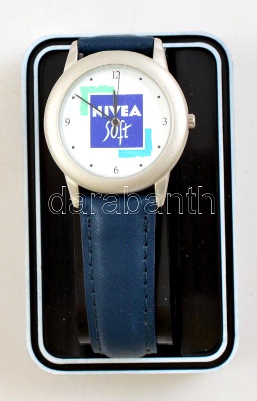 Leírás: Nivea Soft karóra, bőr szíjjal, dobozban, elemcserére szorul, jó állapotban