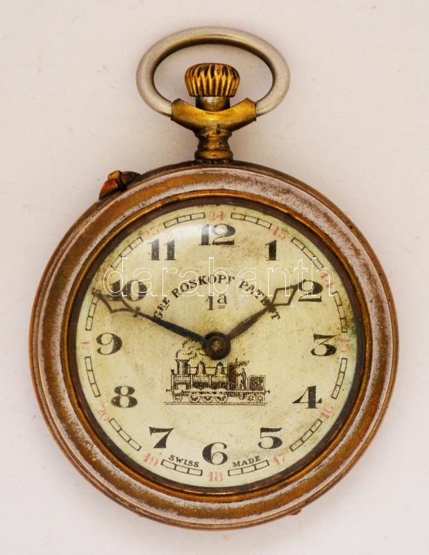 Leírás: Prekopf Patent vasútmotívumos zsebóra, működik