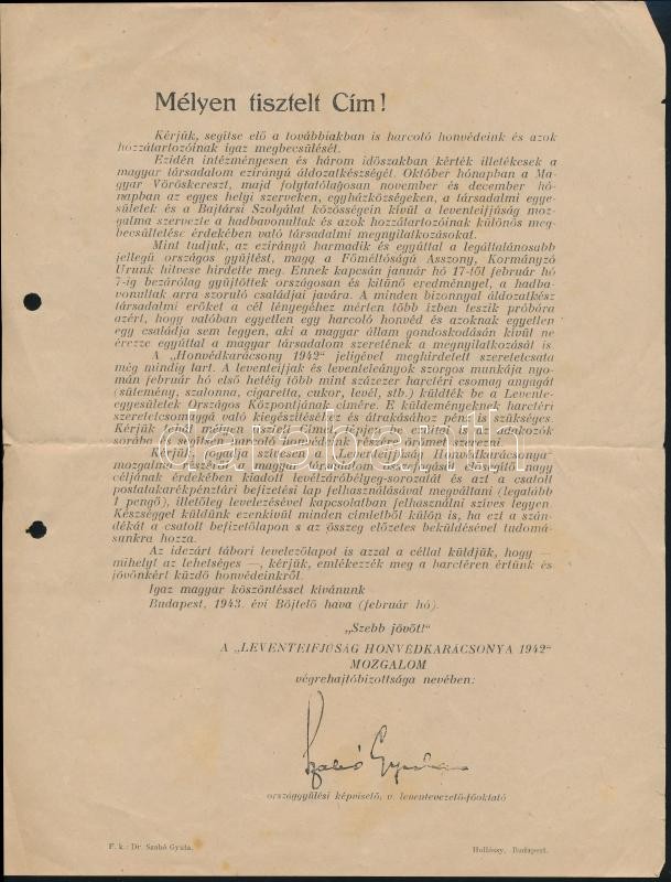 Honvédkarácsony adománybélyegek és kísérőlevél https://www.darabanth.com/hu/320-Gyorsarveres/320.0/Festmeny-mutargy-papirregiseg-egyeb/Parafilatelia~500015/Honvedkaracsony-adomanybelyegek-es-kiserolevel~II1772708