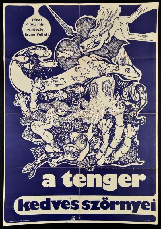 Leírás: 1979 Révész Antal (1931-) Wigner Judit (1923-): A tenger kedves szörnyei, olasz film plakát, hajtásnyommal, 79x55,5 cm