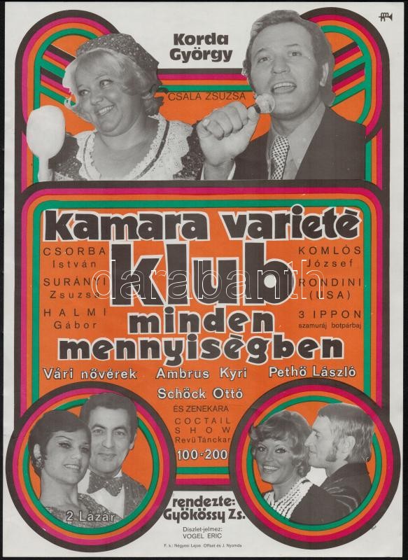 cca 1970 Kamara varieté klub plakát, Korda György, Csala Zsuzsa 40x29 ... https://www.darabanth.com/hu/320-Gyorsarveres/320.0/Festmeny-mutargy-papirregiseg-egyeb/Plakat~500030/cca-1970-Kamara-variete-klub-plakat-Korda-Gyorgy-Csala-Zsuzsa-40x29-cm~II1771233
