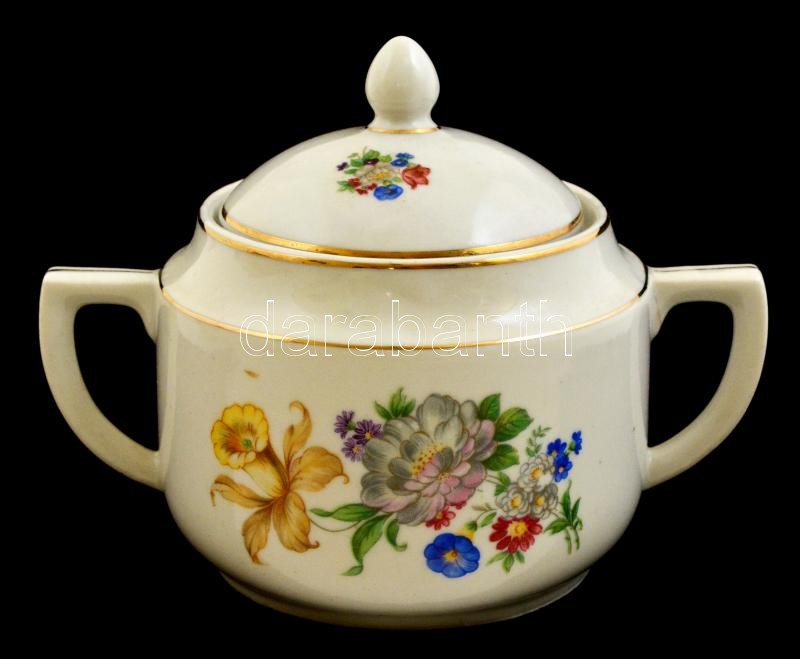 Leírás: Zsolnay virág mintás cukortartó, matricás, jelzett, hibátlan, 16×10 cm m:11 cm
