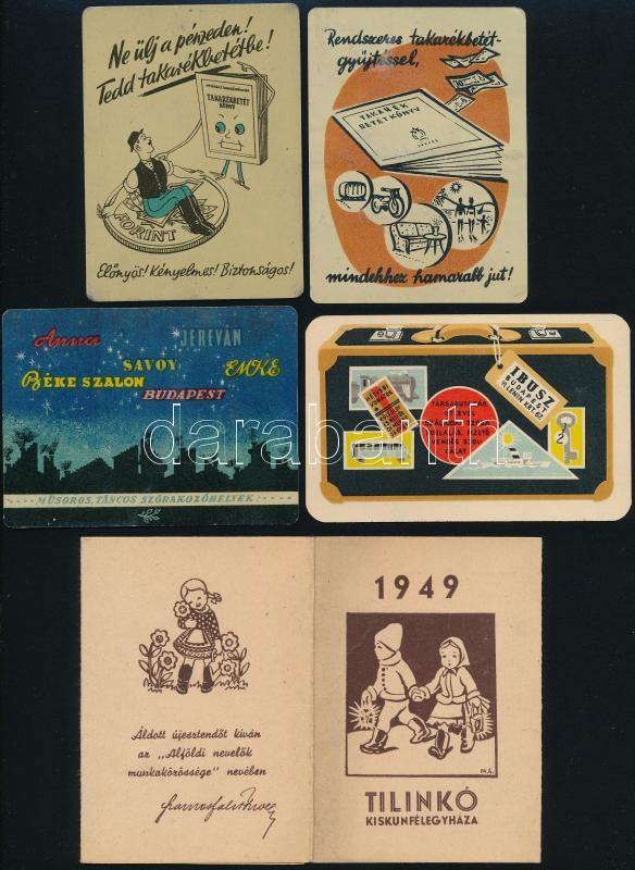 1949-1958 3 db fém kártyanaptár + 2 db papír