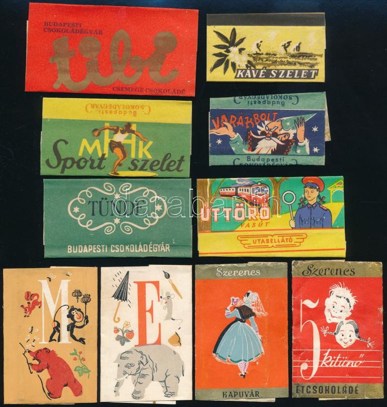 Leírás: cca 1960-70 Magyar, retró csokoládépapírok, különböző méretben, 10db / chocolate papers