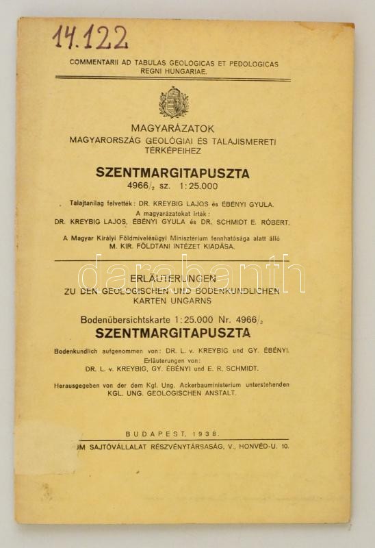 Leírás: Magyarázatok Magyarország geológiai és talajismereti térképeihez: Szentmargitapuszta. Bp., 1938, M. Kir. Földtani Intézet.