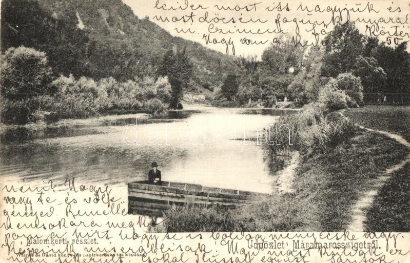 Leírás: Máramarossziget, Sighetu Marmatiei; Malomkerti részlet. Wizner és Dávid kiadása / lake, rowing boat (EK)