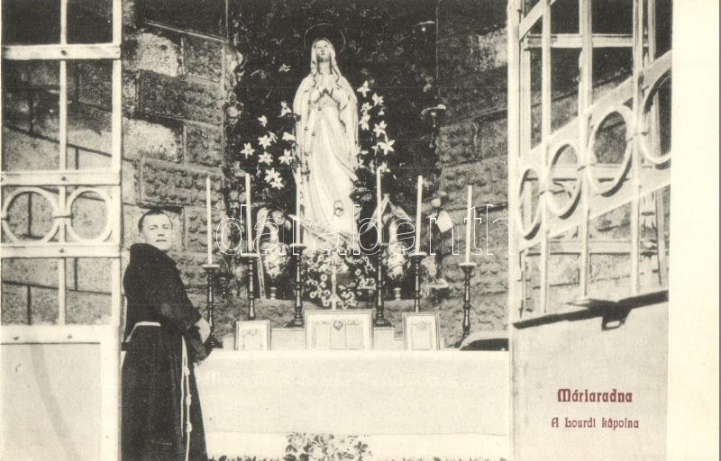Leírás: Máriaradna, Radna; A Lourdi kápolna, oltár, pap / chapel, altar, priest