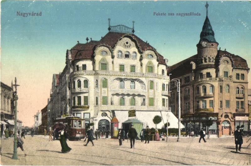 Nagyvárad, Oradea; Fekete Sas szálloda, villamos, Moskovits cipőgyár, ... https://www.darabanth.com/hu/320-Gyorsarveres/320.0/Kepeslapok/Erdely~1500005/Nagyvarad-Oradea-Fekete-Sas-szalloda-villamos-Moskovits-cipogyar-Grosz-uzlete-hotel-tra~II1767041