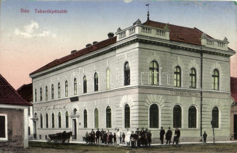 Leírás: Bán, Trencsénbán, Bánovce nad Bebravou; Takarékpénztár. Hertzka Ármin kiadása / savings bank (Rb)