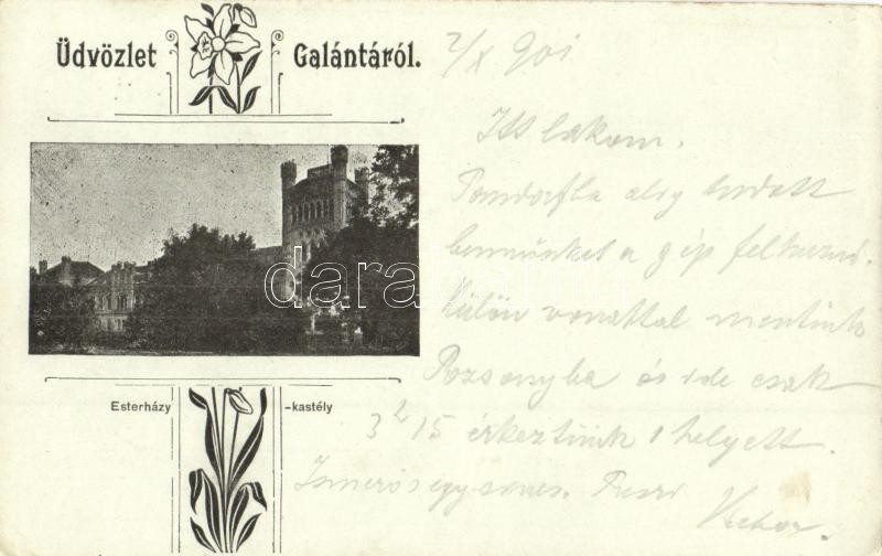 Galánta, Esterházy kastély / castle. Art Nouveau, floral (EK) https://www.darabanth.com/hu/320-Gyorsarveres/320.0/Kepeslapok/Felvidek~1500006/Galanta-Esterhazy-kastely-castle-Art-Nouveau-floral-EK~II1772289