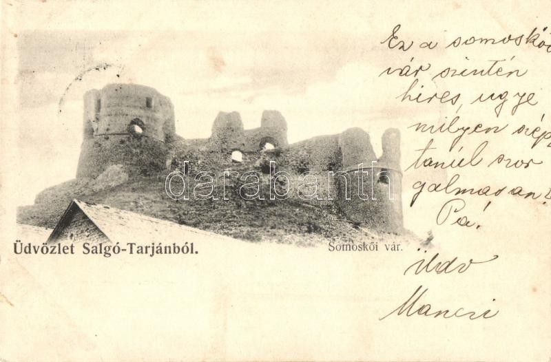 Leírás: Sátorosbánya, Siatorská Bukovinka; Somoskői vár / Hrad Somoska / castle ruins (ázott / wet damage)