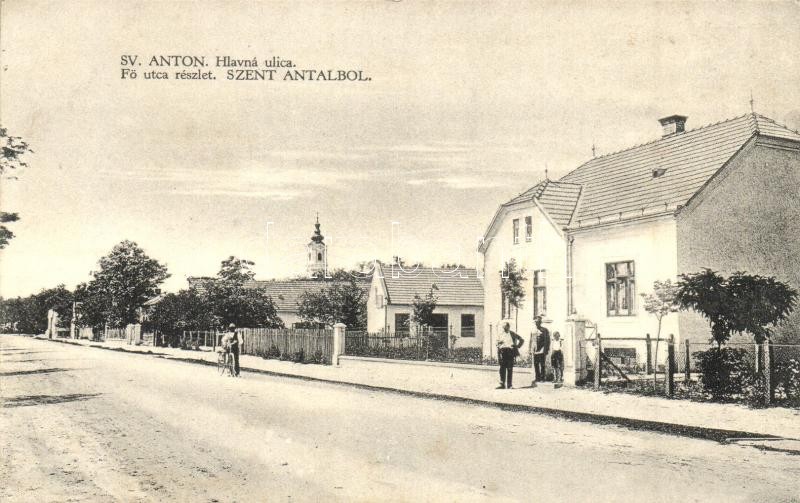 Szentantal, Sväty Anton; Hlavná ulica / Fő utca, templom, üzlet, kerék... https://www.darabanth.com/hu/320-Gyorsarveres/320.0/Kepeslapok/Felvidek~1500006/Szentantal-Svaty-Anton-Hlavna-ulica-Fo-utca-templom-uzlet-kerekpar-Kiadja-a-Fogyaszta~II1770342