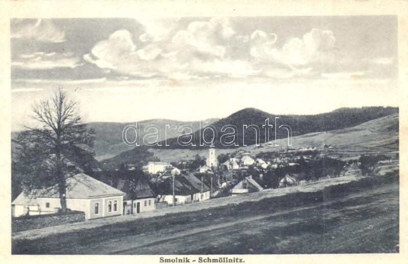 Leírás: Szomolnok, Schmölnitz, Smolnik; látkép, templom. Lichtig 442. / general view, church (EK)