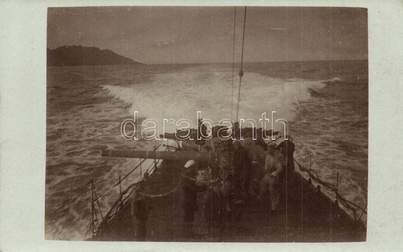 Leírás: SMS Kaiman Osztrák-Magyar Haditengerészet topedónaszádja, matrózok, a torpedóvető csőnél tisztek / K.u.K. Kriegsmarine, SM Torpedoboot Kaiman / WWI Austro-Hungarian Navy torpedo boat, mariners. photo