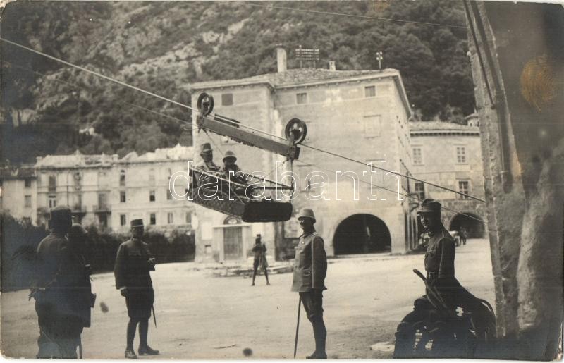1917 Osztrák-magyar katonák egy felvonónál, amiben Herbit török tábornok ül / WWI Austro-Hungarian K.u.K. soldiers by an elevator with Turkish General Herbit. photo (EK)