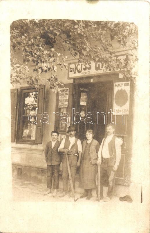 1920 Bácsalmás, Özv. Kiss Gy. vegyeskereskedése. photo (Rb) https://www.darabanth.com/hu/320-Gyorsarveres/320.0/Kepeslapok/Magyarorszag~1500004/1920-Bacsalmas-Ozv-Kiss-Gy-vegyeskereskedese-photo-Rb~II1638161