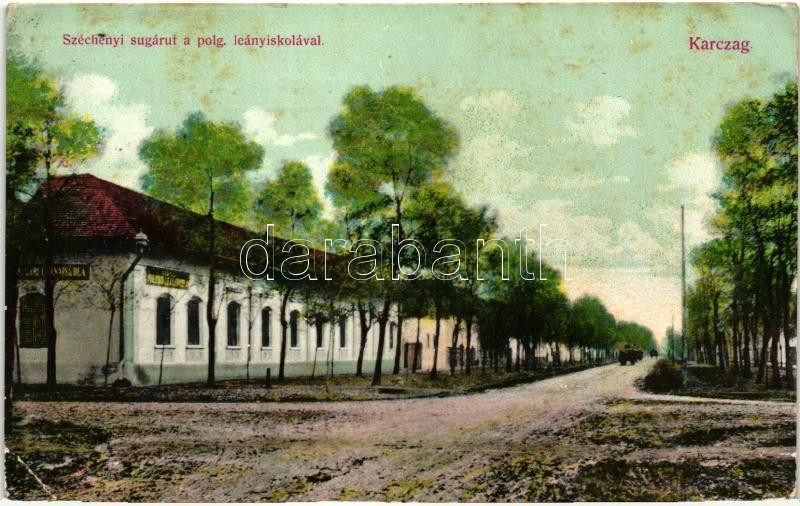 Leírás: Karcag, Széchenyi sugárút a polgári leányiskolával, kiadja Nagy Lajos (fl)