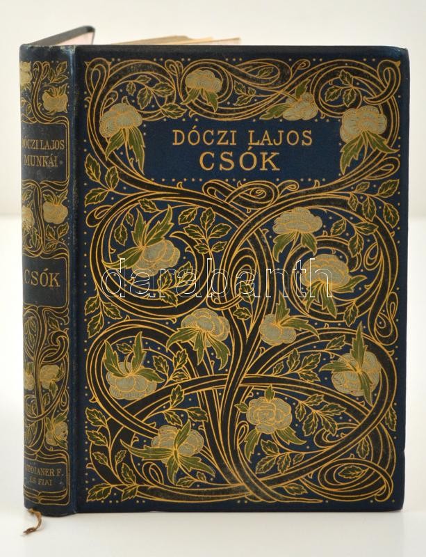 Leírás: Dóczi Lajos: Csók. Vigjáték négy felvonásban. Dóczi Lajos munkái I. kötet. Bp., é.n., Wodianer F. és Fiai (Lampel Róbert). Hatodik kiadás. Kiadói aranyozott, festett, illusztrált Gottermayer N.-féle egészvászon-kötésben, aranyozott lapélekkel, ex-libris-szel.