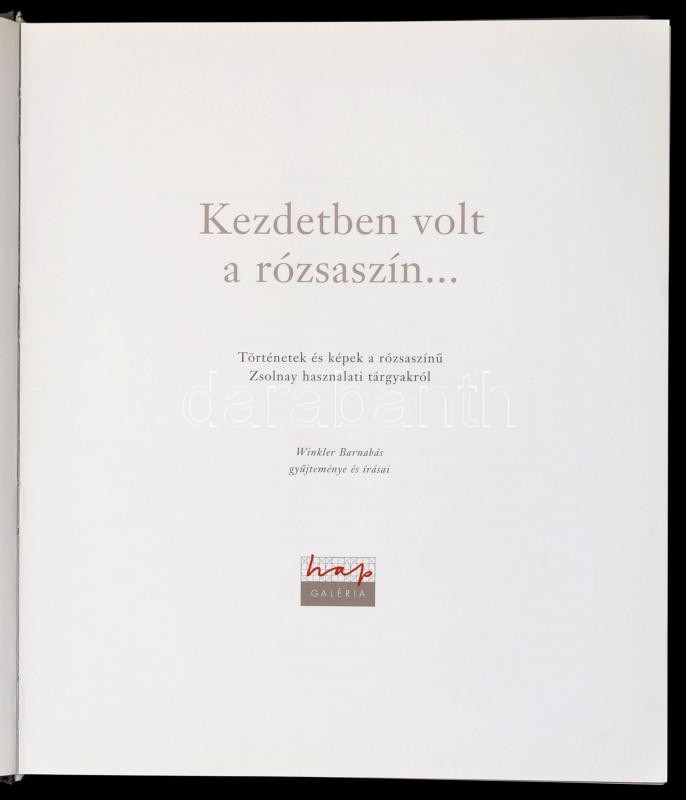 Kezdetben volt a rózsaszín ... Történetek és képek a rózsaszínű Zsolnay használati tárgyakról. Winkler Barnabás gyűjteménye és írásai. Bp., 2007, HAP. Kiadói kartonált kötés, papír védőborítóval, jó állapotban.