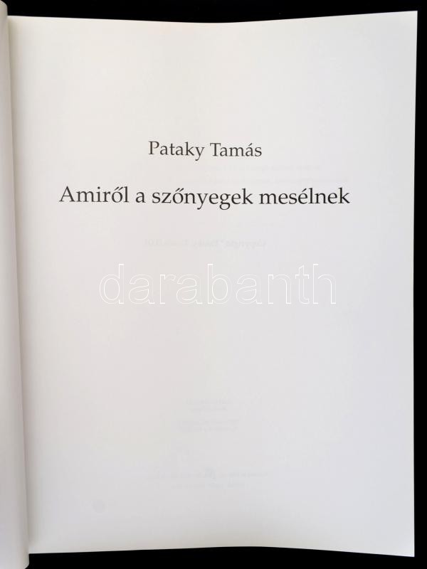 Leírás: Pataky Tamás: Amiről a szőnyegek mesélnek. 2004. Kiadói papírkötés, jó állapotban.
