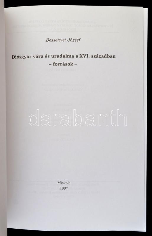 Bessenyei József: DiósgyÅ‘r vára és uradalma a XVI. században - források -. Tanulmányok DiósgyÅ‘r történetéhez 2. Miskolc, 1997, Borsod-Abaúj-Zemplén Megyei Levéltár-Miskolci Egyetem Történelem Segédtudományai Tanszék. Kiadói papÃrkötés.