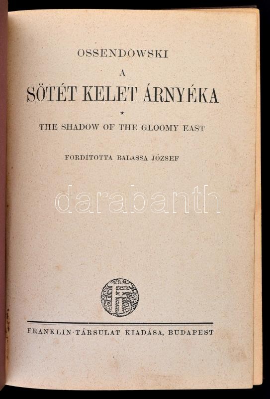 Ossendowski: A sötét Kelet árnyéka. The shadow of the gloomy East. Fordította Balassa József. Bp., é.n., Franklin. Kiadói aranyozott egészvászon kötés, kissé kopottas állapotban.