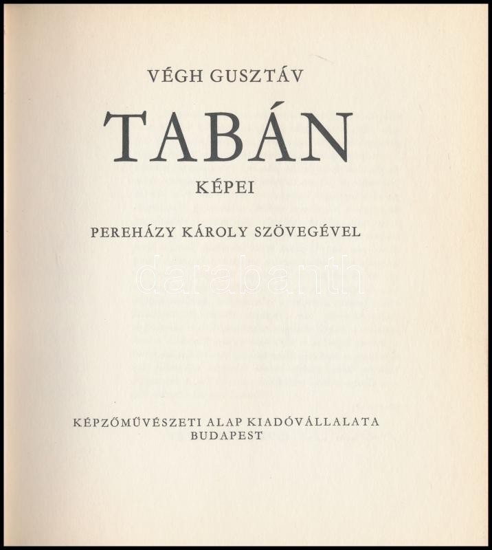 Leírás: Végh Gusztáv: Tabán képei. Pereházy Károly szövegével. Bp., é.n., Képzőművészeti Alap Kiadóvállalata. Kiadói kartonált papírkötés, kiadói kopottas papír védőborítóval.