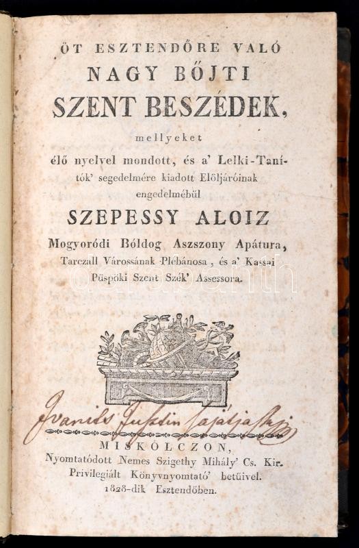 Szepessy Aloiz: Öt esztendőre való nagy böjti szent beszédek mellyeket élő nyelvvel mondott és a lelki tanítók segedelmére kiadott előljáróinak engedelmébűl...
