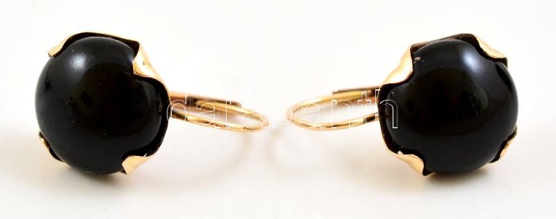 Leírás: Arany (Au) 14K fülbevaló pár fekete féldrágakővel, jelzés nélkül, bruttó: 3,8 / Gold earrings, without hallmark, 3,8 g
