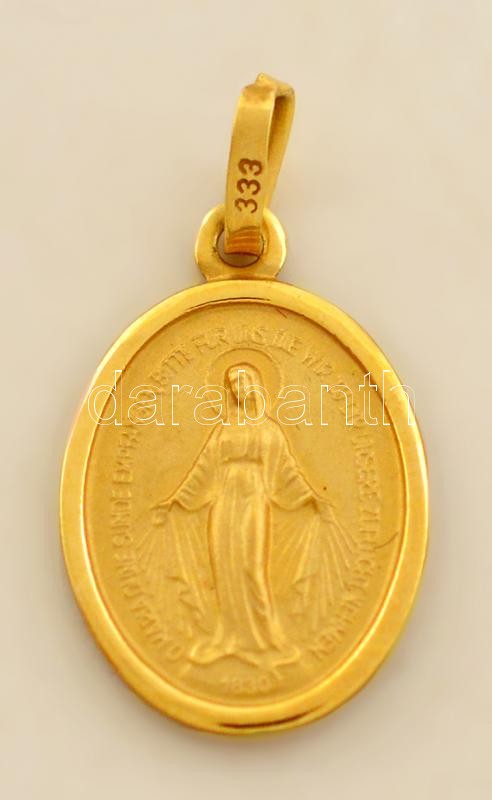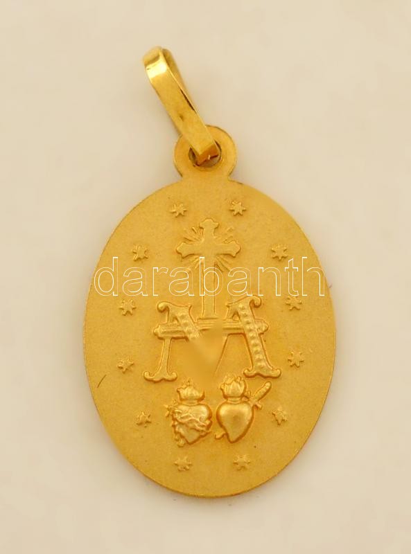 Arany(Au) 8K "Mária" medál, jelzett, nettó. 0,9 g https://www.darabanth.com/hu/320-Gyorsarveres/320.0/Nemesfem-Disztargyak-Orak-es-Ekszerek/Nemesfem-Disztargyak-Orak-es-Ekszerek~500031/AranyAu-8K-Maria-medal-jelzett-netto-0-9-g~II1773060