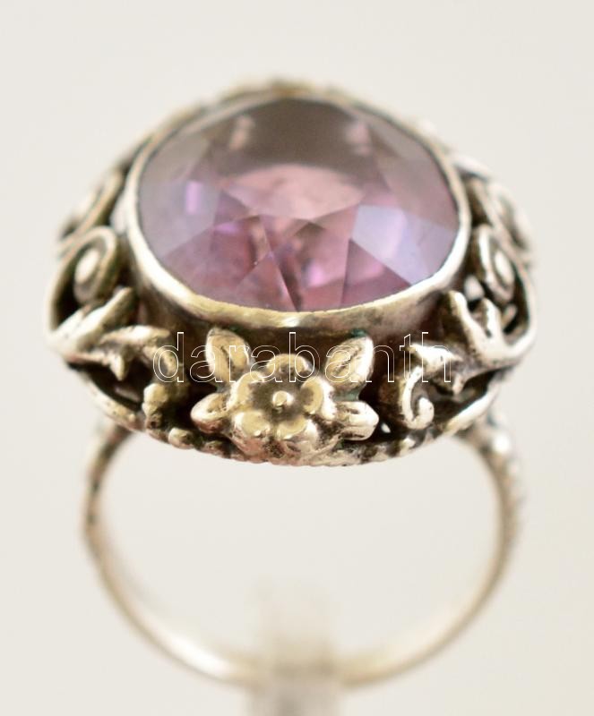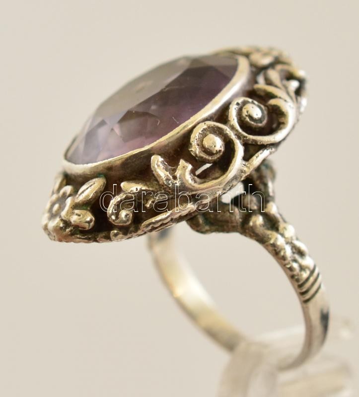 Leírás: Ezüst(Ag) gyűrű, ametiszt kővel, jelzés nélkül, bruttó: 8,8 g