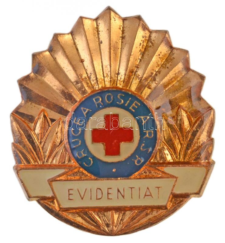 Románia DN "Vörös kereszt - Regionális Tudományok Román Szövetsége / Kitüntetés" aranyozott, zománcozott jelvény T:1,1-