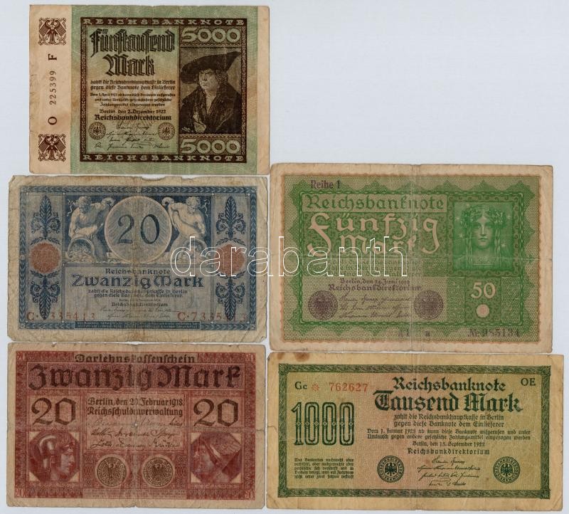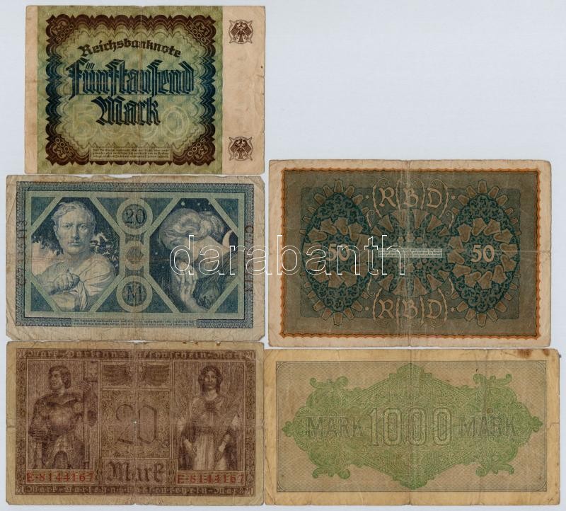 Ge... https://www.darabanth.com/hu/320-Gyorsarveres/320.0/Numizmatika/Kulfoldi-bankjegyek~2500011/Nemet-Birodalom-1915-1923-9db-os-vegyes-bankjegy-tetel-TIII-III---German-Empire-1915-1923-9pcs-~II1766324