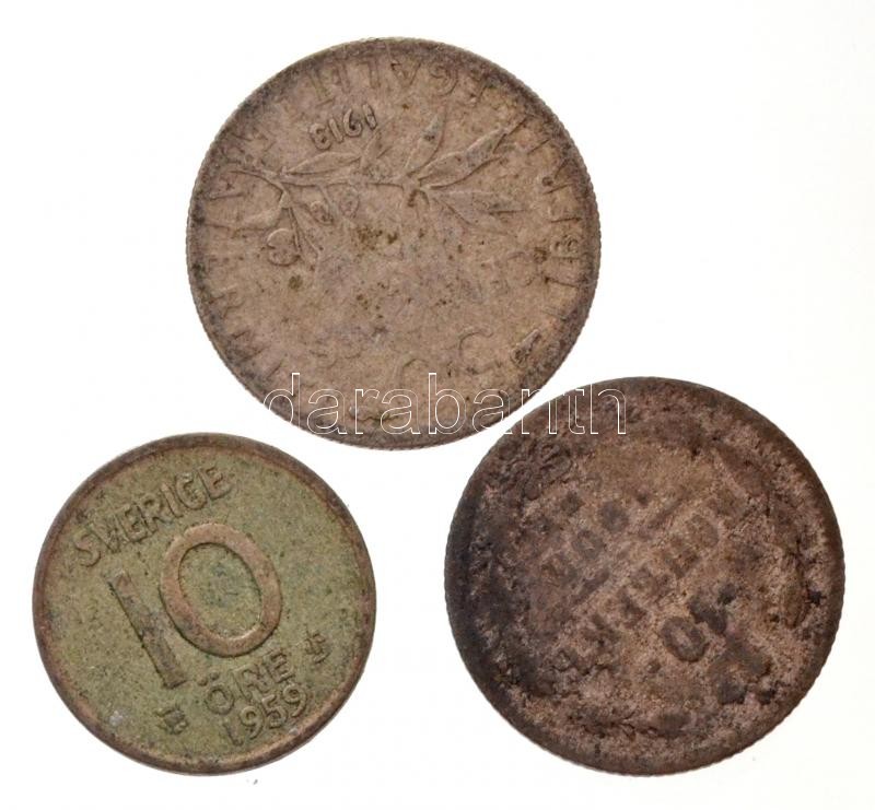 3db-os vegyes rossz tartású ezüstpénz tétel, közte Franciaország 1913. 50c Ag T:2-,3