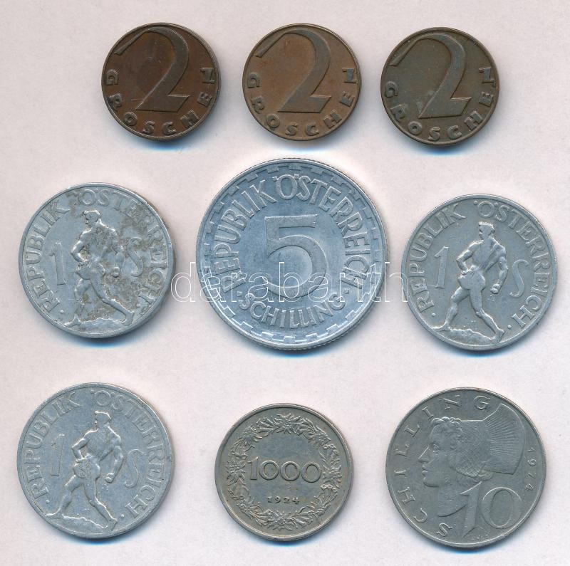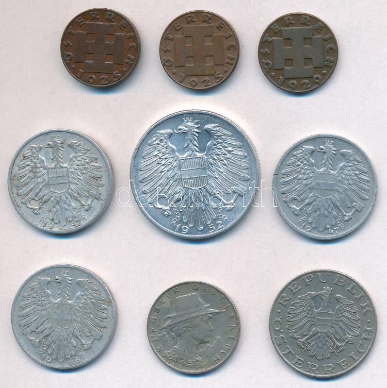 Ausztria 1924-1974. 9db-os vegyes fémpénz tétel, közte 1952. 5Sch Al T:2,2-