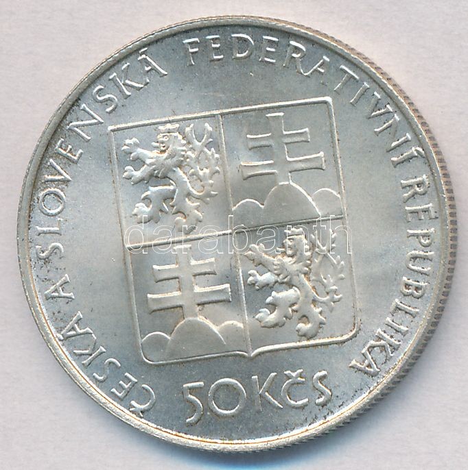 Czechosl... https://www.darabanth.com/hu/320-Gyorsarveres/320.0/Numizmatika/Kulfoldi-fem-es-ezustpenzek~2500012/Csehszlovakia-1991-50K-Ag-Bohemia-gozhajo-T1---Czechoslovakia-1991-50-Korun-Ag-Steamship-~II1766302