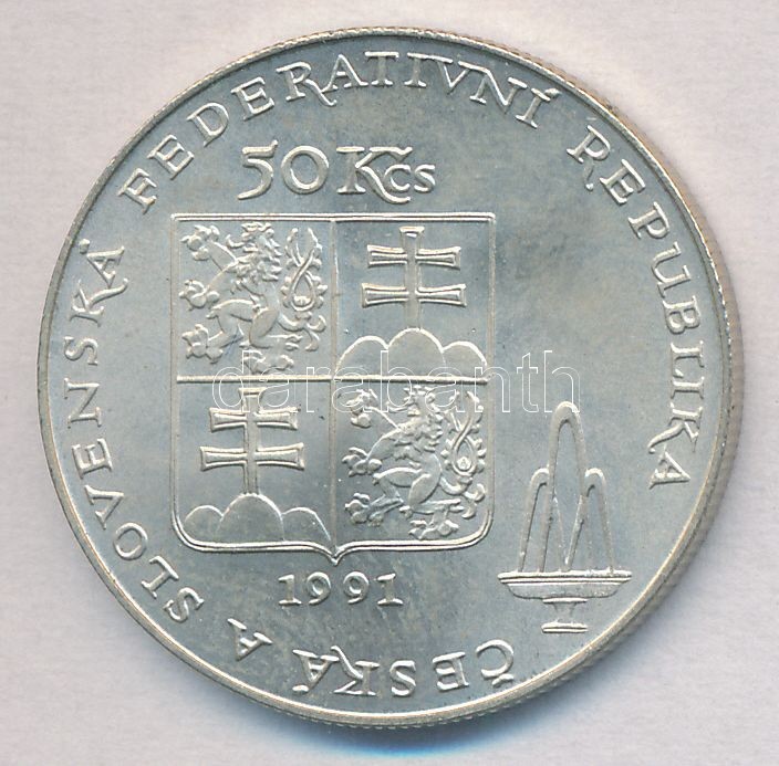 ... https://www.darabanth.com/hu/320-Gyorsarveres/320.0/Numizmatika/Kulfoldi-fem-es-ezustpenzek~2500012/Csehszlovakia-1991-50K-Ag-Karlovy-Vary-furdoepulet-T1--Czechoslovakia-1991-50-Korun-Ag-~II1766304