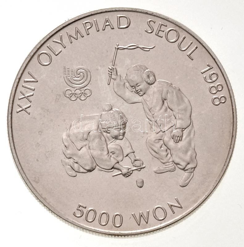 South Korea 1987. 5000 Won Ag "1988 Olympics - Boys spinning top" in original case with certificate C:BU