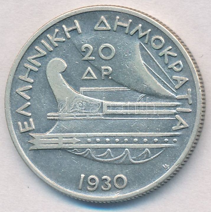 Greece 1930. 20 Drachmai Ag C:XF,VF https://www.darabanth.com/hu/320-Gyorsarveres/320.0/Numizmatika/Kulfoldi-fem-es-ezustpenzek~2500012/Gorogorszag-1930-20D-Ag-T2-2---Greece-1930-20-Drachmai-Ag-CXF-VF~II1764867