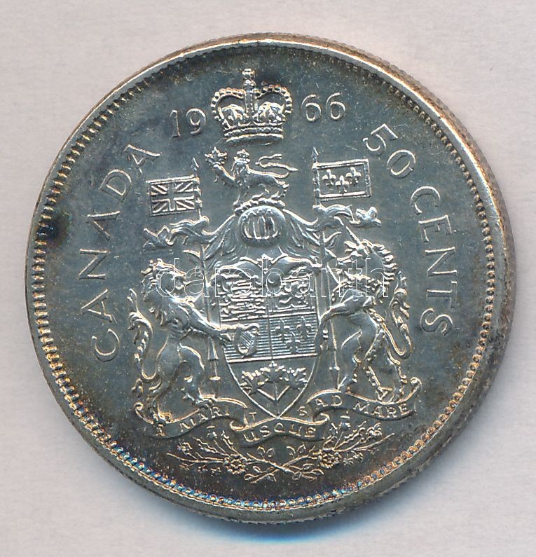Canada 19... https://www.darabanth.com/hu/320-Gyorsarveres/320.0/Numizmatika/Kulfoldi-fem-es-ezustpenzek~2500012/Kanada-1966-50c-Ag-II-Erzsebet-T1-2-patina---Canada-1966-50-Cents-Ag-Elizabeth-II-CAU-XF-~II1766336