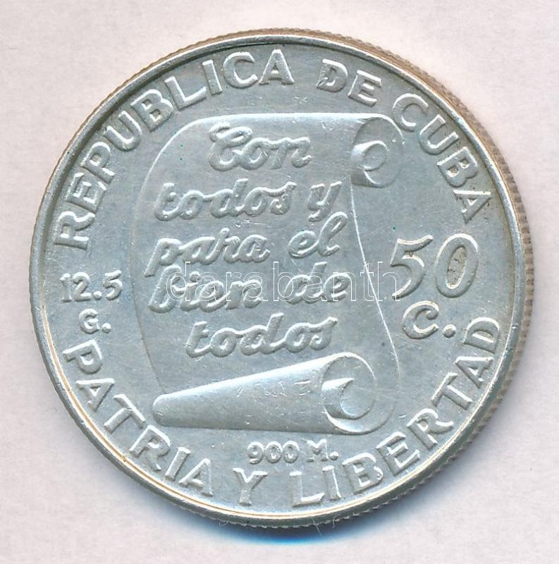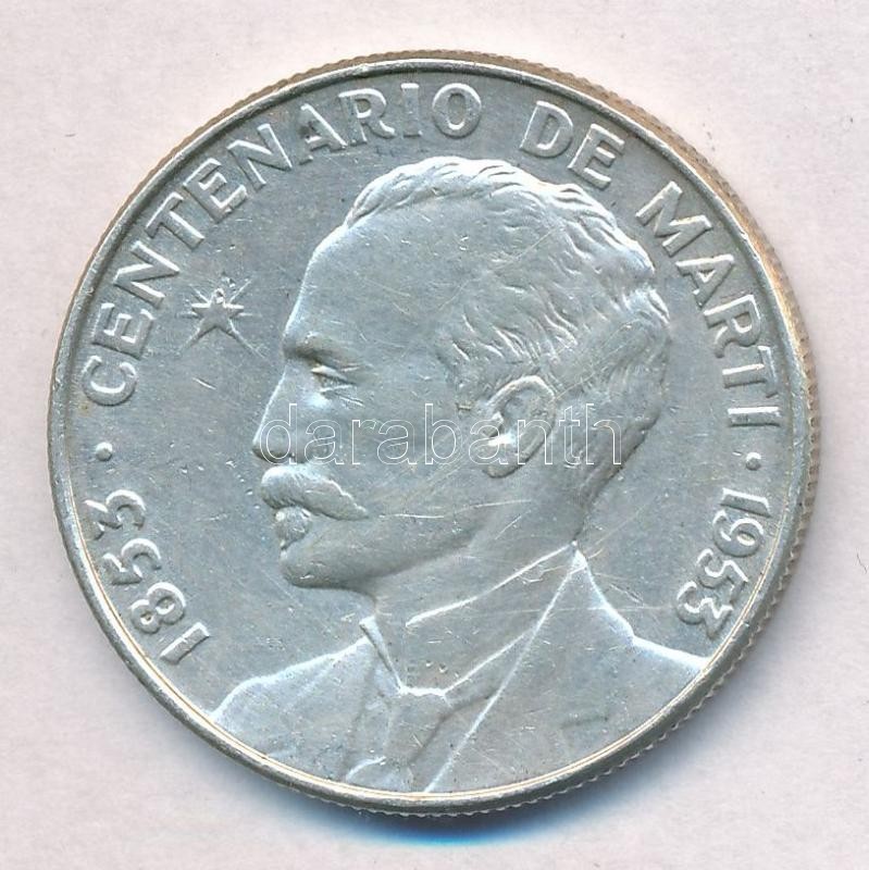 Cuba 1953. ... https://www.darabanth.com/hu/320-Gyorsarveres/320.0/Numizmatika/Kulfoldi-fem-es-ezustpenzek~2500012/Kuba-1953-1P-Ag-Jose-Marti-T2-felszini-karc--Cuba-1953-1-Peso-Ag-Jose-Marti-CXF-surface-scra~II1766410