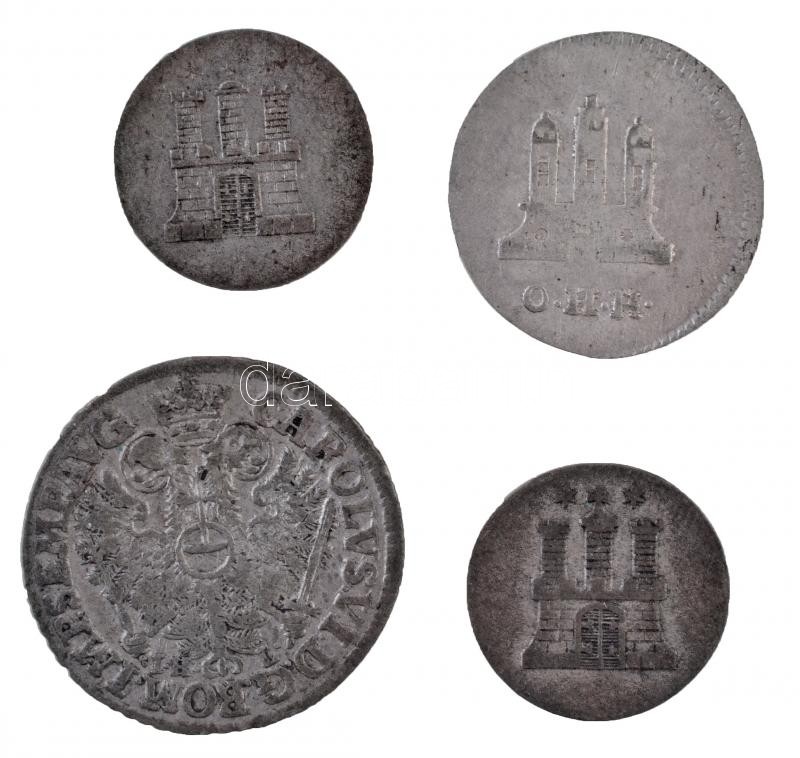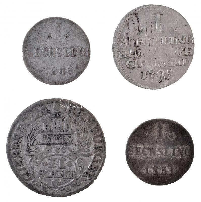 Német Államok / Hamburg 1726IHL 2Sch Ag "VI. Károly" + 1795OHK 1Sch Ag + 1846. Sechsling (6pf) Ag + 1851. Sechsling (6pf) Ag T:2,2-