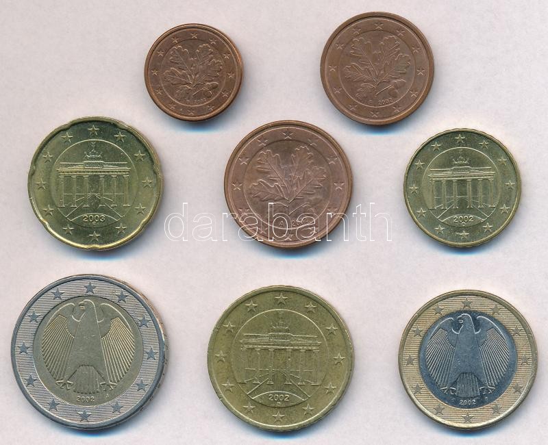 Germany 2002... https://www.darabanth.com/hu/320-Gyorsarveres/320.0/Numizmatika/Kulfoldi-fem-es-ezustpenzek~2500012/Nemetorszag-2002-2003-1c-2E-8xklf-forgalmi-sor-T2-2---Germany-2002-2003-1-Cent--2-Euro-8xdi~II1761821