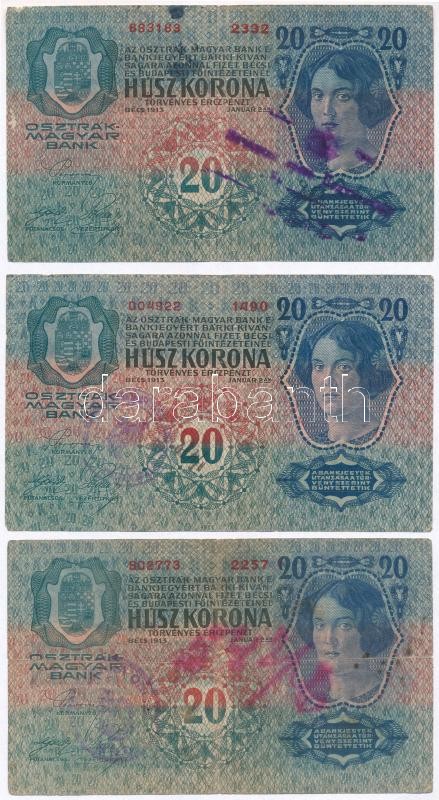 1913. 20K (3x) kiolvashatatlan felülbélyegzésekkel T:III