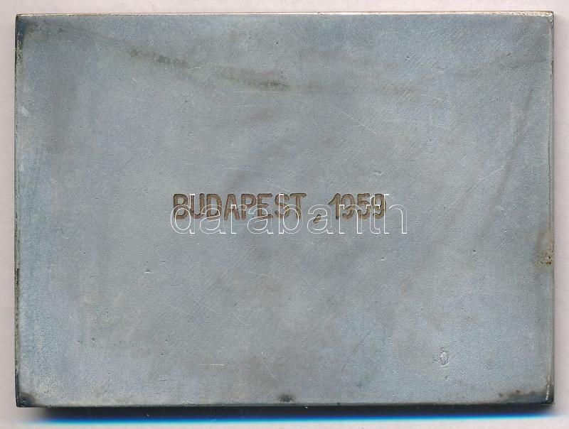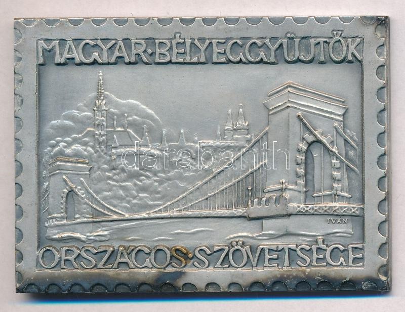 Leírás: Iván István (1905-1968) 1959. "Magyar Bélyeggyűjtők Országos Szövetsége" ezüstözött Br emlékplakett, hátoldalon gravírozva (48x65,5mm) T:1-,2 patina
