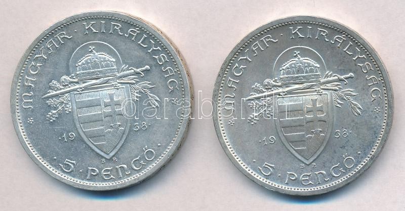 Leírás: 1938. 5P Ag "Szent István" (2x) T:1-,2 apró ph.