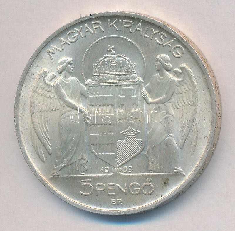 Leírás: 1939. 5P Ag "Horthy balra" T:2