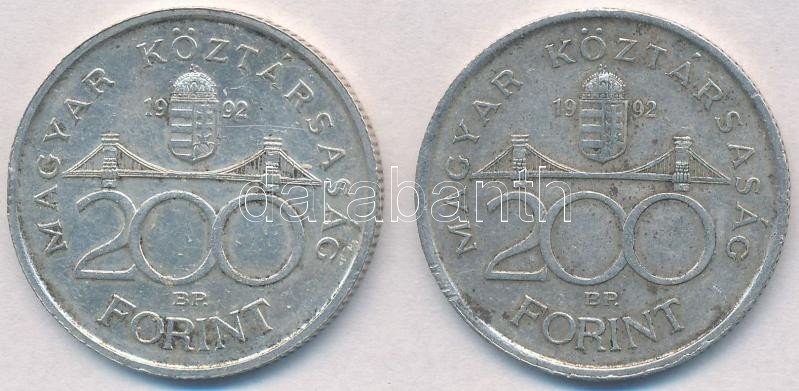 Leírás: 1992. 200Ft Ag "MNB" (2x) T:2 patina