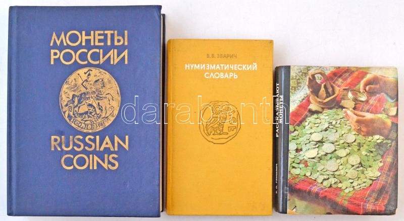3db orosz nyelvű numizmatikai könyv tétel, benne V.V. Uzdenikov: Russian Coins 1700-1917., Moszkva 1992. + C. N. Ryabtsewitsch: About Coins. Minszk, 1977. + V.V. Zvarich: Numismatic Dictionary. Plovs, 1978. Használt, jó állaptoban
