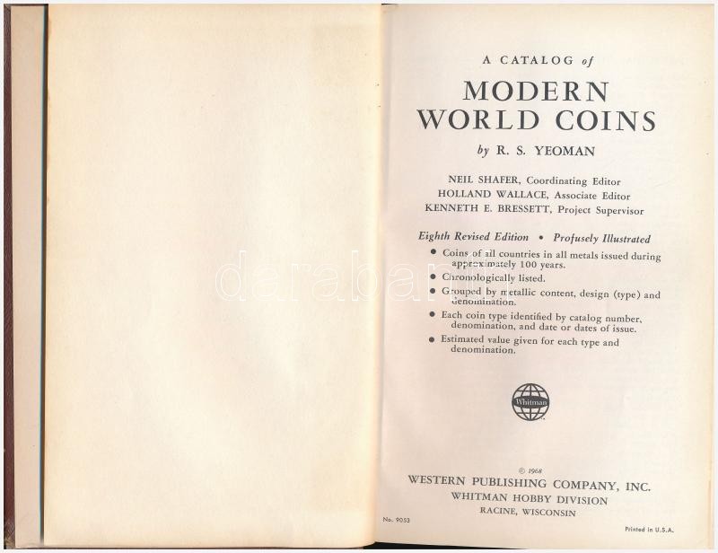 R.S. Yeoman: A Catalog of Modern World Coins 8th Edition. Western Publishing Company Inc., Racine, Wisconsin, 1968. Használt, jó állapotban, gerincén sérülések.
